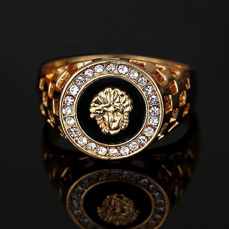 Fashion Gold Sivler Plated CZ Crystal Superhero Black Lion Men Ring Man Male Finger Ring Animal Anel masculino bague homme